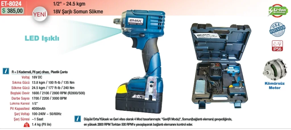 Model: Emax Şarjlı Somun Sökme Makinesi 1/2''