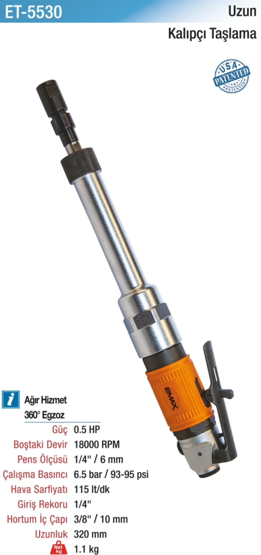 Profesyonel Uzun Havalı Kalıpçı Taşlama, işlevselliği ve dayanıklılığı ile öne çıkan bir taşlama makinesidir. Yüksek kaliteli malzemelerden üretilmiş olan bu ürün, uzun ömürlü kullanım imkanı sunar. Profesyonel işlerinizde güvenle kullanabileceğiniz bu taşlama makinesi, işlerinizi hızlı ve kolay bir şekilde tamamlamanıza yardımcı olacaktır.