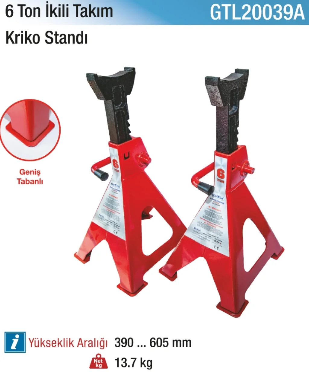Hepsicinde satılan 6 ton 390-605 mm. Kriko Standı (İkili Takım), aracınızın bakımı ve onarımı için ideal bir yardımcıdır. Dayanıklı malzemeden üretilmiş olan bu kriko standı, güvenliği ve işlevselliği bir arada sunar. Araçlarınızı kaldırarak rahatça altında çalışma imkanı sağlar. Hem amatörler hem de profesyoneller için uygun olan bu ürünü hemen satın alabilirsiniz.