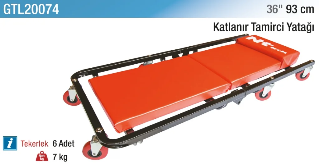 36" (93 cm) Katlanır Tamirci Yatağı, tamir işlerinizi kolaylaştırmak için tasarlanmış pratik ve konforlu bir üründür. Katlanabilir yapısı sayesinde taşıması ve saklaması çok kolaydır. Genişliği 93 cm olan bu tamirci yatağı, bel ve sırt desteği sunarak uzun süreli çalışmalarda rahatlık sağlar. Hafif ama dayanıklı malzemeden üretilmiştir. Araç altı veya düşük alanlarda çalışma sırasında ergonomik bir destek sunar.