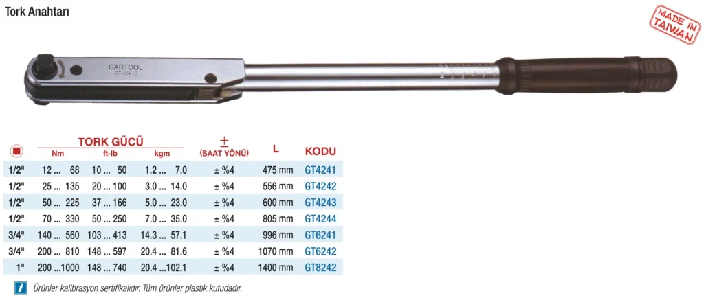 Gartool Tork Anahtarı 1/2'' 12-68 N/M 475 mm, mükemmel kalite ve dayanıklılığı ile ön plana çıkıyor. İşlevselliği sayesinde her türlü iş için ideal bir seçenektir. Uzun ömürlü kullanım sağlar.