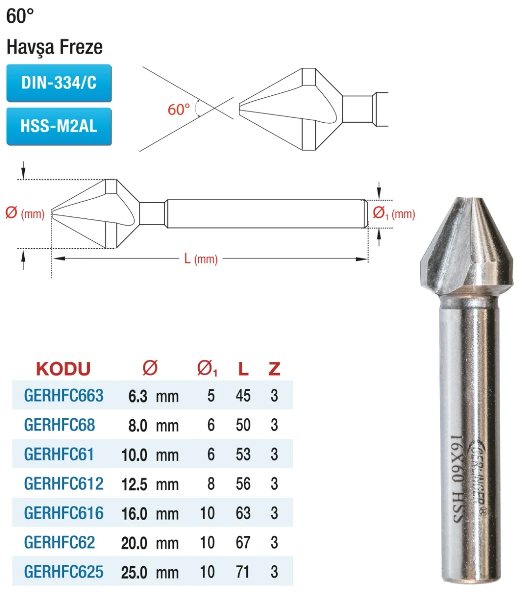 Gerlinger 60° Havşa Frezeler, yüksek kaliteli malzemelerden üretilmiş, dayanıklı ve hassas CNC freze uçlarıdır. Endüstriyel kullanıma uygun olan bu frezeler, işlemlerde yüksek performans ve mükemmel sonuçlar sağlar. Her türlü malzeme üzerinde kesim yapabilme özelliği ile işlerinizi hızlı ve verimli bir şekilde tamamlamanıza yardımcı olur.