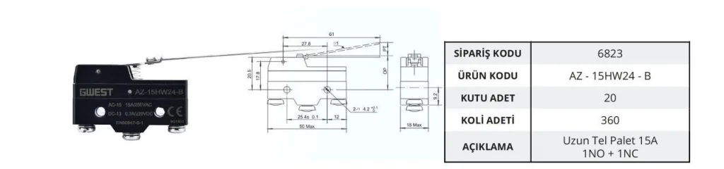 Gwest AZ‑15HW24‑B, uzun tel paletli metal makaralı yapısıyla erişimin zor olduğu noktalar için özel tasarlanmıştır. 15 A kontak kapasitesi sayesinde yüksek performanslı anahtarlama sunar. 20 paket, yedek stok ya da çoklu panel kurulumları için uygundur.