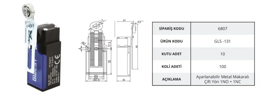 Gwest GLS-131 limit switch, ayarlanabilir çift yönlü metal makaralı yapısıyla geniş hareket algılama kapasitesi sunar. Makaralı mekanizma, hareketli parçaların her iki yönde çalışmasını algılayarak elektriksel sinyalleri hızlı şekilde iletir. Ayarlanabilir tetikleme noktası sayesinde kullanıcıya sistem ihtiyaçlarına göre özelleştirme imkânı sağlar.