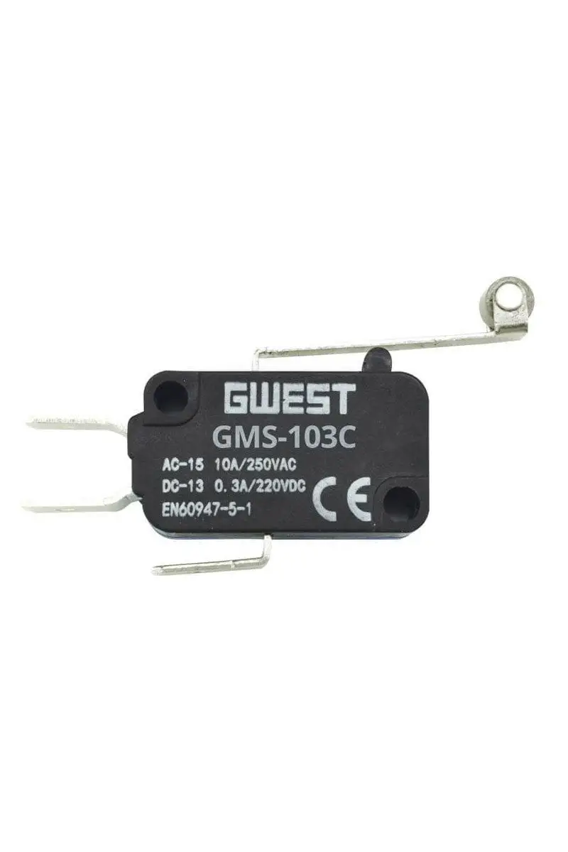 Gwest GMS‑103C, metal makaralı uzun kol yapısıyla temas noktalarına uzak mesafeden tetikleme imkanı sunan sağlam bir mikro switch modelidir. 10A’e kadar akım taşıyabilir. Dayanıklı metal makara ve kol yapısı sayesinde hareketli parçalarda güvenli çalışma sunar.