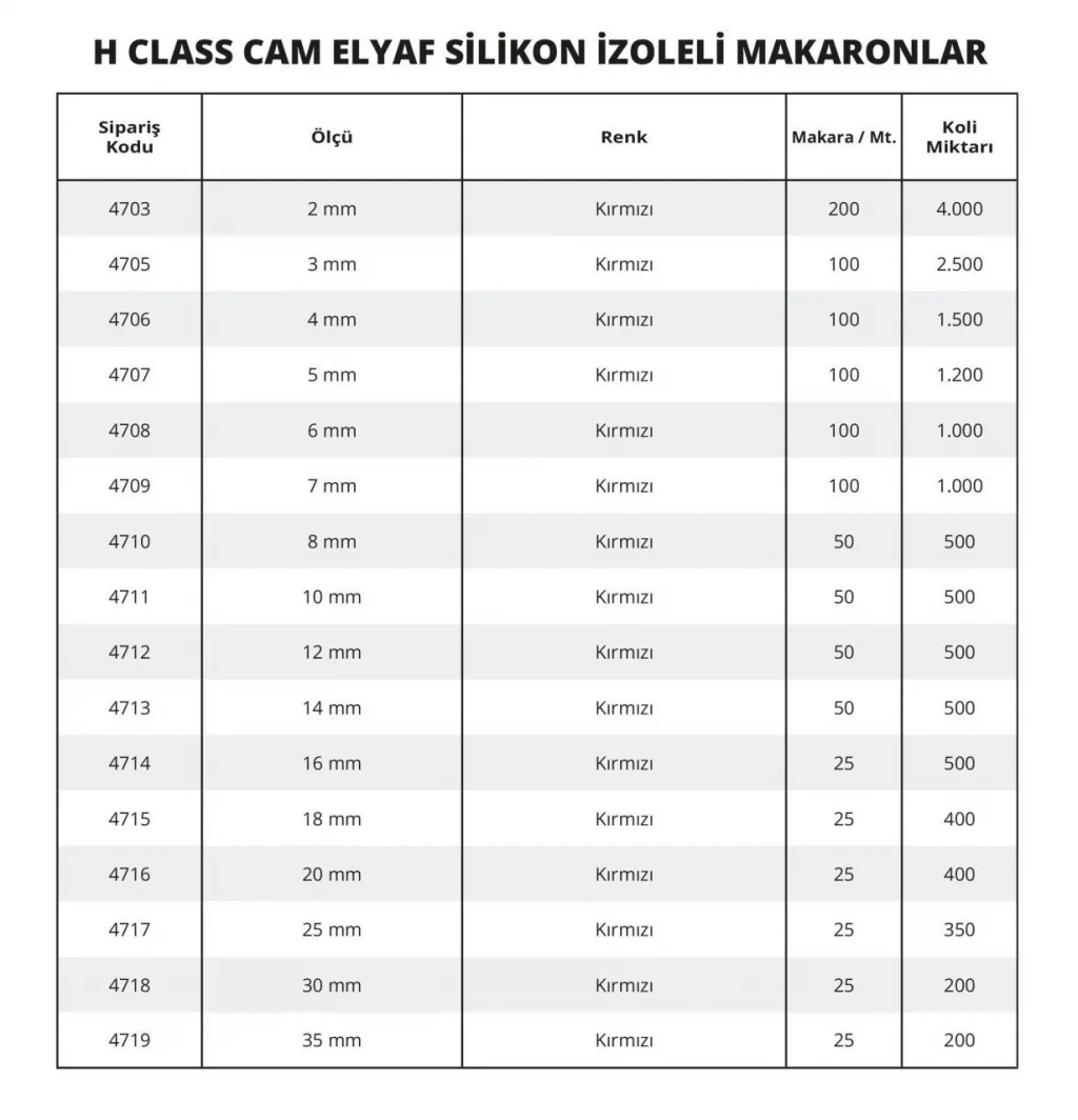 Kırmızı renkli bu model, görsel ayrım açısından avantaj sağlar. Endüstriyel pano, motor, transformatör ve elektrikli ısıtıcı sistemlerinde kullanılabilir. Alev geciktirici ve elektriksel izolasyon özellikleri sayesinde güvenli kullanım sunar.