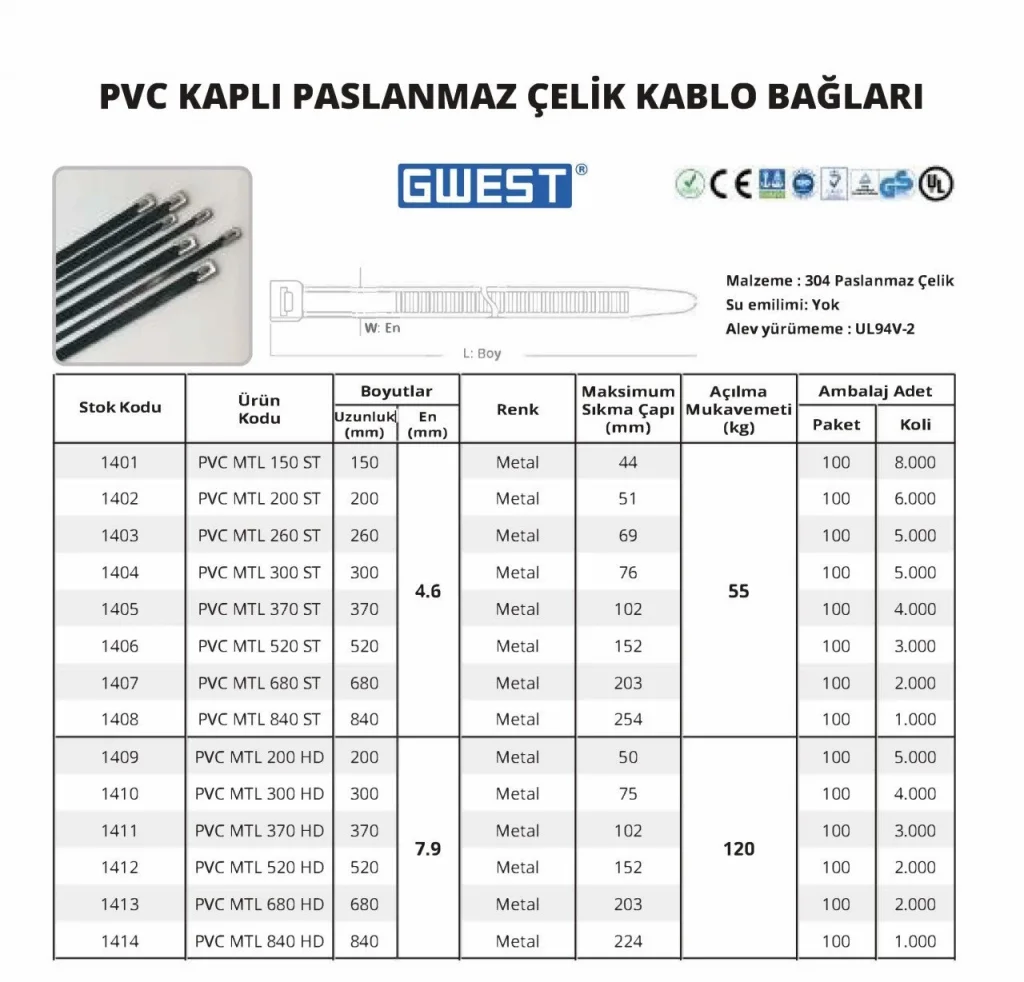 Gwest PVC Kaplı Paslanmaz Çelik Kablo Bağları 100 Adet, yüksek kaliteli ve dayanıklı malzemelerden üretilmiş, kablo düzenleme ve sabitleme işlemlerinde kullanabileceğiniz mükemmel bir üründür. Paslanmaz çelik malzeme, kablo bağlarının uzun ömürlü ve güçlü olmasını sağlar, aynı zamanda PVC kaplama, bağların esnekliğini arttırırken koruyucu özellik sunar. 100 adet olarak paketlenen bu kablo bağları, uzun süreli kullanım için idealdir ve farklı alanlarda kablo yönetimi için pratik bir çözümdür.