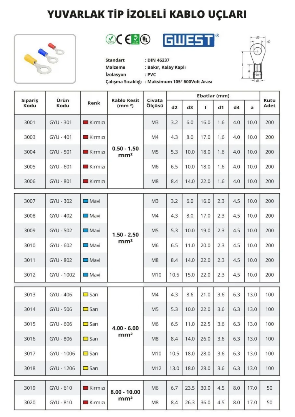Gwest Yuvarlak Tip İzoleli Kablo Uçları 200 Adet ile elektrik bağlantılarınızda güvenli, sağlam ve uzun ömürlü çözümler elde edebilirsiniz. İzoleli yapısı sayesinde güvenli bağlantılar sağlar ve yüksek performans sunar! ⚡?