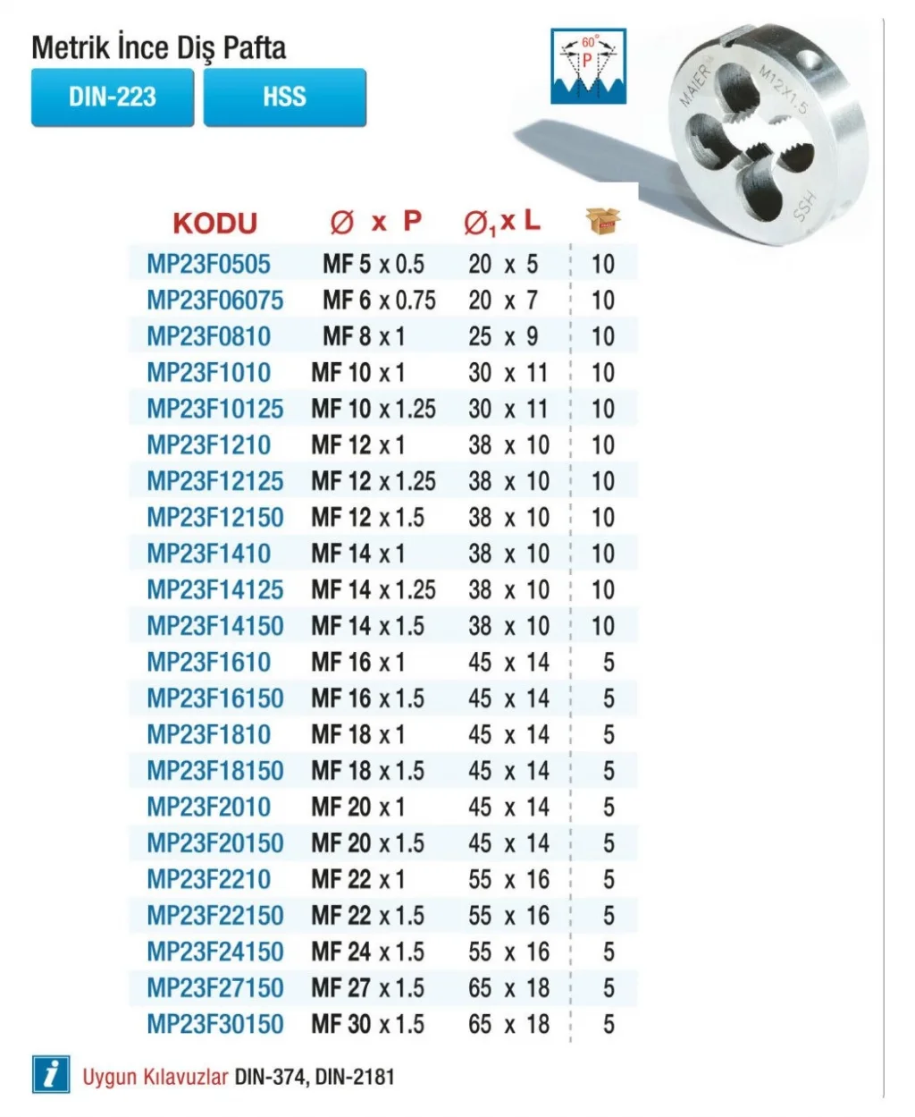 HSS Metrik İnce Diş Paftalarımız, yüksek kaliteli malzemeden üretilmiş olup dayanıklı ve işlevseldir. En iyi fiyatlarla Hepsicinde satışta!