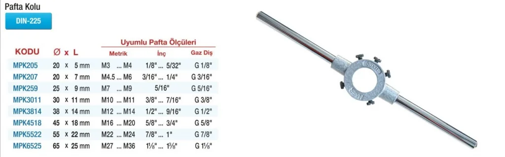 HSS Pafta Kolları, yüksek kaliteli malzemelerden üretilmiş, dayanıklı ve işlevsel bir üründür. İşinizi kolaylaştıracak bu pafta kolları, uzun ömürlü kullanım imkanı sunar. HSS Pafta Kolları'nı en uygun fiyatlarla Hepsicinde'de bulabilirsiniz.