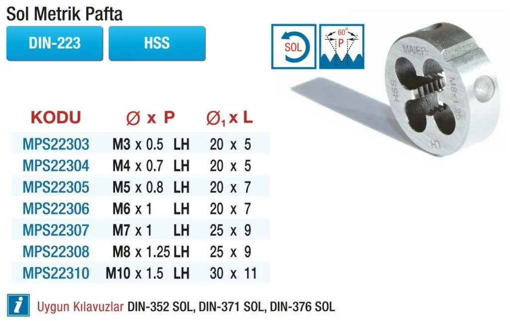 Hepsicinde HSS SOL METRİK PAFTALAR, yüksek kaliteli malzemeden üretilmiş, dayanıklı ve işlevsel bir üründür. En uygun fiyatlarla satın alabilirsiniz.