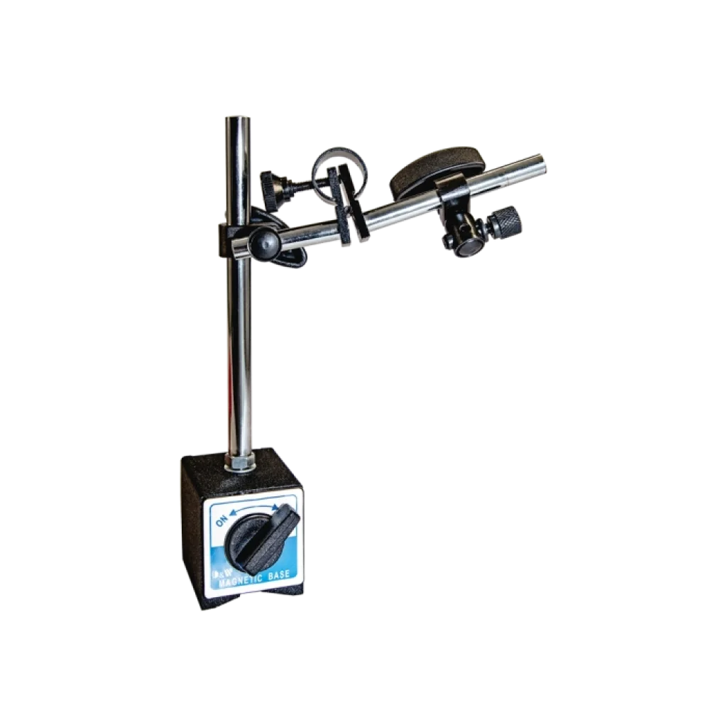 Manyetik tabanı ile metal yüzeylere güçlü şekilde tutunur, yerinden oynamadan ölçüm yapılmasını mümkün kılar. İnce ayar vidası sayesinde pozisyonlamada mikron seviyesinde ayarlama yapılabilir.