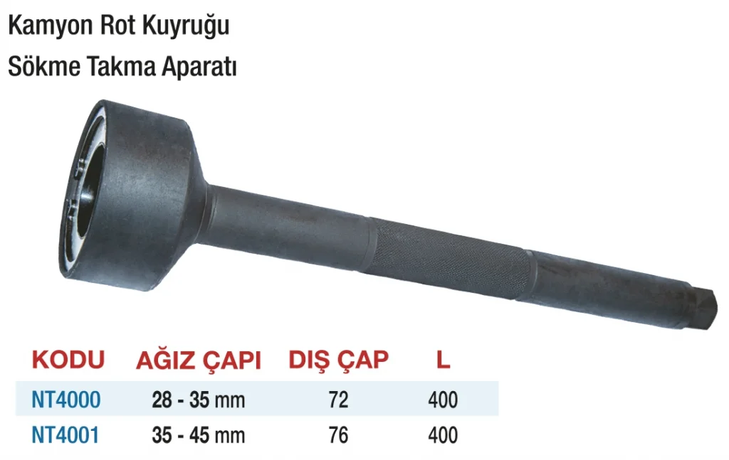 Kamyon bakım araçları arasında yer alan bu aparat, hem rot kuyruğunun doğru şekilde sökülmesini hem de hızlı bir şekilde takılmasını sağlar. Ağır vasıta bakım aparatı olarak, özellikle büyük araçların bakımını gerçekleştiren ustalar için oldukça faydalıdır. Her türlü ağır vasıta için uyumlu olan rot kuyruğu sökme aparatı, dayanıklı yapısı sayesinde uzun süreli kullanım sunar. Bu aparatlar, rot kuyruğu değişimi sırasında iş gücünü ve zamanı büyük ölçüde azaltır.