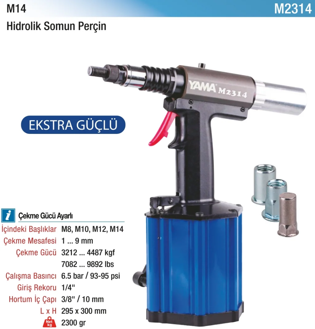 M8-M14 Hidrolik Somun Perçin Pensi, kalın metal yüzeylerde sağlam bağlantılar kurmak için ideal ağır hizmet tipi bir çözümdür. Yüksek tork gerektiren uygulamalarda bile rahatlıkla çalışır.