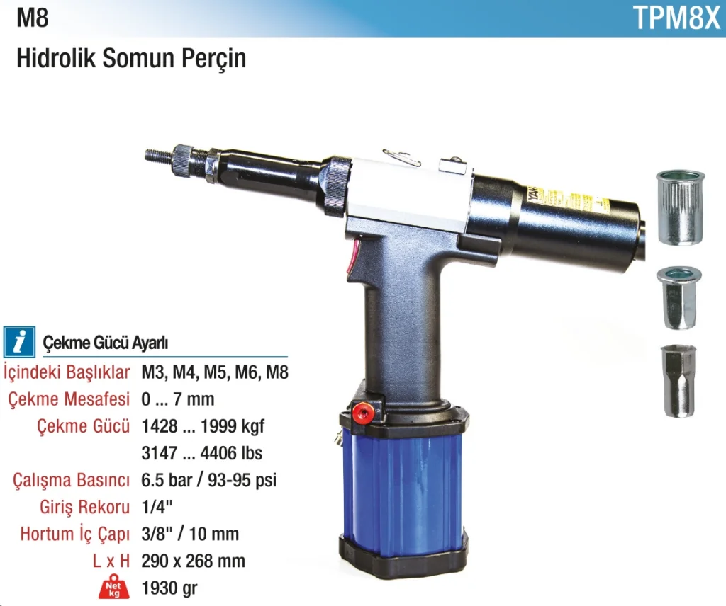 Yüksek kaliteli M3-M8 Hidrolik Somun Perçin Pensi, güçlü yapısı ve dayanıklılığı ile ön plana çıkıyor. İşlevsel tasarımı sayesinde hızlı ve kolay kullanım sağlar, uzun ömürlü bir üründür.