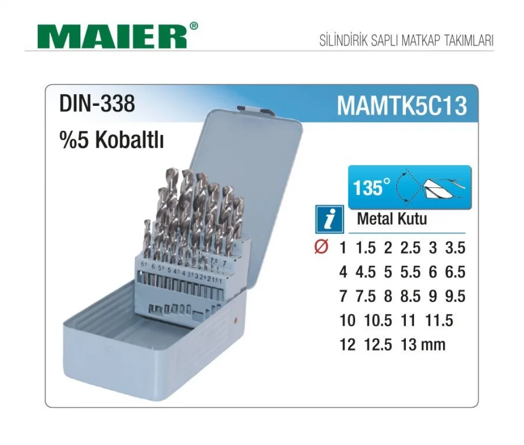 MAIER 25 Parça %5 CO Matkap Ucu Takımı, yüksek kaliteli malzemeden üretilmiş ve dayanıklı bir matkap ucu takımıdır. Birbirinden farklı uçları ile geniş bir kullanım alanı sunar. Hem amatör hem de profesyonel işler için idealdir. Uygun fiyatıyla dikkat çeker.