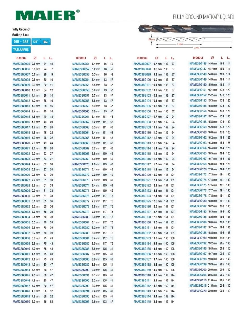 Maier DIN 338 Fully Ground Silindirik Saplı Matkap Uçları, yüksek kaliteli malzemeden üretilmiş olup dayanıklı ve işlevseldir. Hızlı delme özelliği sayesinde işlerinizi hızlıca ve kolayca tamamlayabilirsiniz. Maier matkap uçları, uzun ömürlü kullanım sağlar ve her türlü delme işlemi için idealdir.