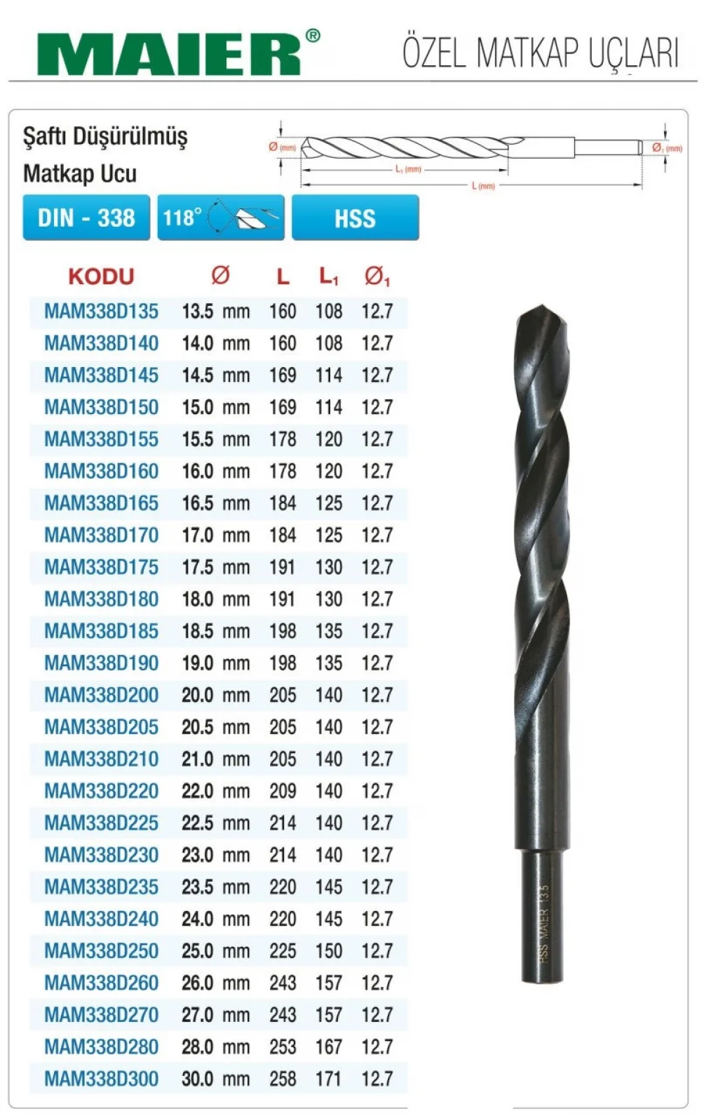 MAIER DIN 338 ŞAFTI DÜŞÜRÜLMÜŞ SİLİNDİRİK SAPLI MATKAP UÇLARI, yüksek kaliteli malzemeden üretilmiş dayanıklı matkap uçlarıdır. Bu matkap uçları, her türlü matkap işlemi için mükemmel bir seçenek sunar. Profesyonel veya amatör kullanıcılar için ideal olan bu matkap uçları, işlerinizi hızlı ve kolay bir şekilde tamamlamanıza yardımcı olacaktır. Uzun ömürlü ve keskin uçları sayesinde yüksek performans sağlar. Hemen satın alın ve kalit