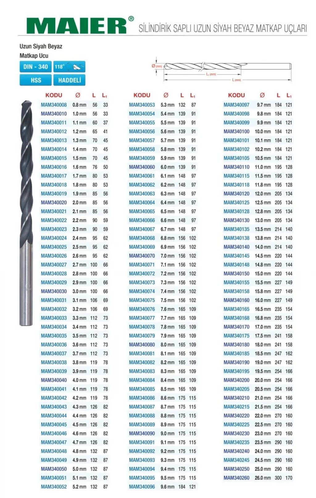 MAIER DIN 340 uzun siyah beyaz silindirik saplı matkap uçları, yüksek kaliteli malzemeden üretilmiş dayanıklı ve işlevsel ürünlerdir. Profesyonel kullanım için ideal olan bu matkap uçları, her türlü işte size yardımcı olacak. Kaliteli işçilikleri ile uzun ömürlü kullanım sağlarlar.