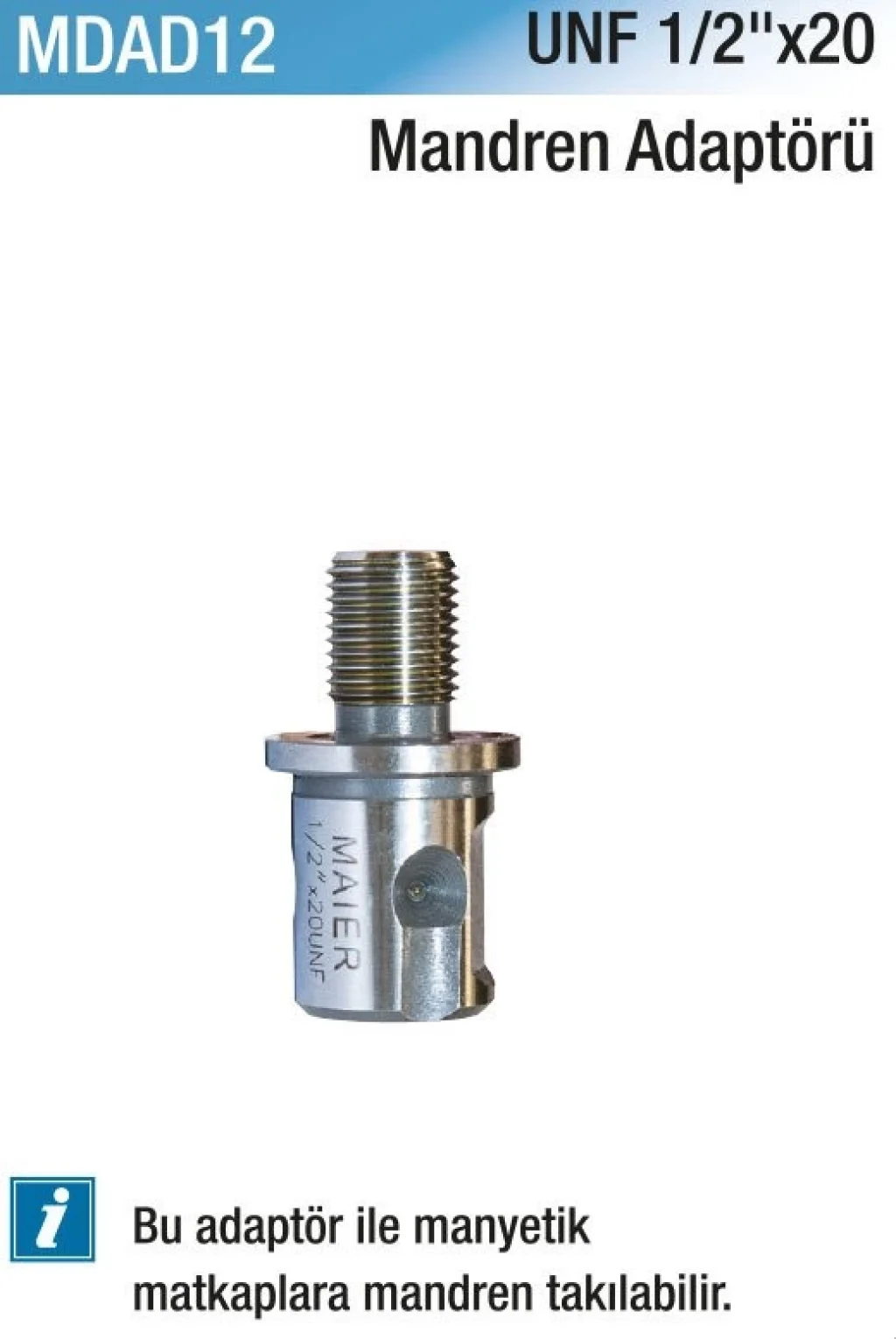 Maier UNF 1/2'' X 20 Mandren Adaptörü (1 Adet), dayanıklı ve kaliteli malzemeden üretilmiş, işlevselliği ile ön plana çıkan bir üründür. Mandren adaptörü, hassas işlerinizde size kolaylık sağlayacak. Şimdi Maier UNF 1/2'' X 20 Mandren Adaptörü (1 Adet) satın alarak işlerinizi daha hızlı ve verimli bir şekilde yapabilirsiniz.