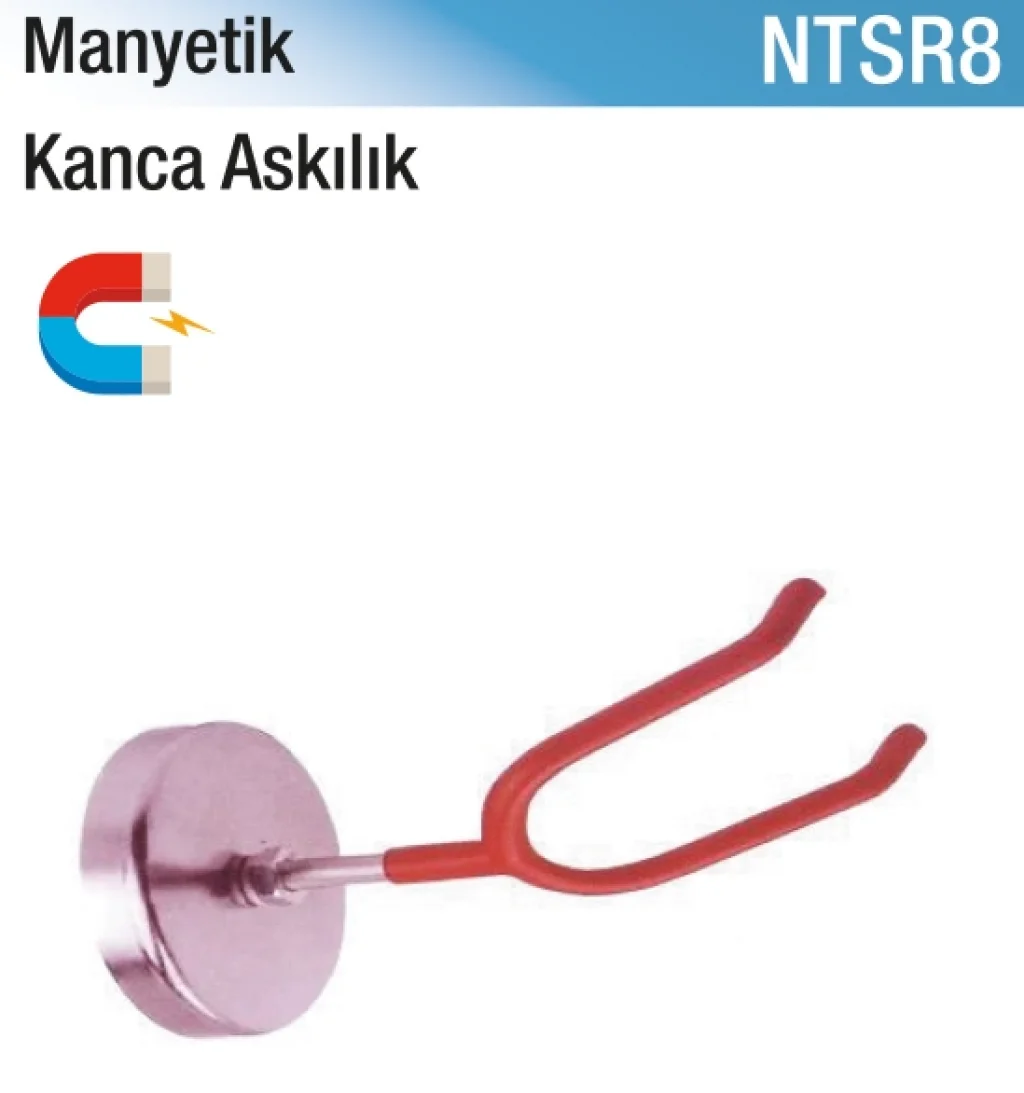 Manyetik Kanca Askılık, güçlü mıknatıs yapısı sayesinde metal yüzeylere kolayca monte edilip çıkarılabilen pratik askı aparatıdır.
