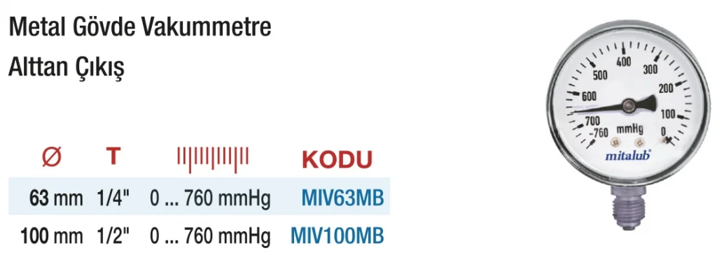 Hepsicinde Metal Gövde Alttan Çıkış Vakummetre, işlevselliği ve dayanıklılığıyla öne çıkan bir üründür. Yüksek kaliteli metal gövdesi sayesinde uzun ömürlü kullanım imkanı sunar. Altından çıkış özelliği ile pratik bir şekilde vakum ölçümü yapabilirsiniz.