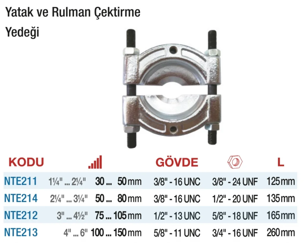 Nttools Yatak ve Rulman Çektirme Yedekleri, orijinal kalitede dayanıklı ve uyumlu parçalar sunar. Yatak ve rulman sökme aparatlarının performansını korumak ve uzun ömürlü kullanım sağlamak için üretilmiştir. Servis ve bakım atölyelerinde kullanılan bu yedekler, tamir sürecinde işin hızını ve kalitesini artırır. Nttools güvencesiyle uyumlu, sağlam ve güvenilir ürünlerdir.