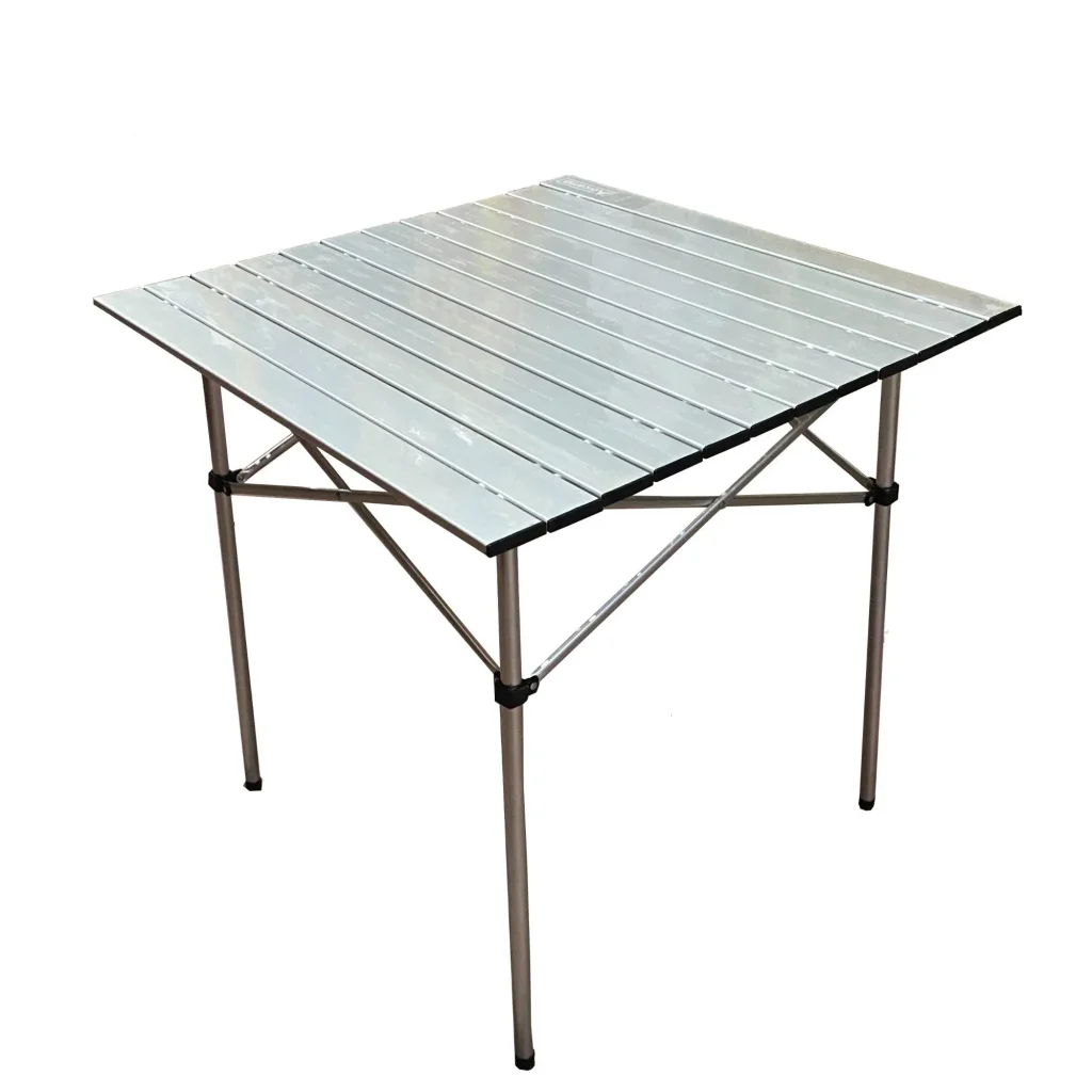 Zorlu doğa koşullarına dayanıklı olan bu masa, paslanmaz ve çizilmeye karşı dirençli yüzeyiyle uzun ömürlü kullanım vadeder. Katlandığında kompakt hale gelen tasarımı, hızlı kurulum ve pratik saklama avantajı sağlar. Ayaklarındaki kaymaz destekler, zeminde dengeli durmasını sağlar.