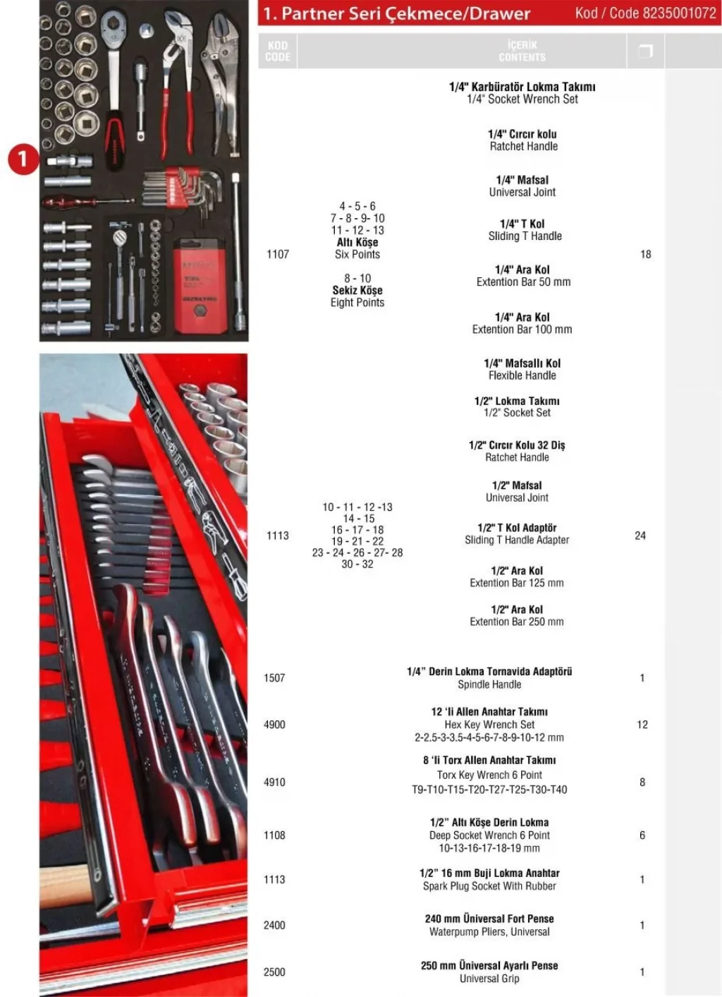Eğer kapsamlı, ergonomik ve dayanıklı bir çekmece içi el aletleri seti arıyorsanız, Partner Dolap 1. Çekmece İçi 72 Parça tam size göre! Şimdi sipariş verin ve profesyonel çalışma alanınızı tamamlayın!