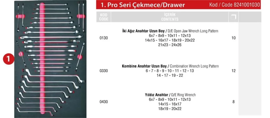 Bu çekmece içi takım seti, İzeltaş lokma takımı, İzeltaş anahtar takımı, İzeltaş pense, İzeltaş tornavida seti gibi temel el aletleriyle birlikte kullanılabilecek düzenli bir saklama çözümüdür. İzeltaş online satış noktalarından kolayca sipariş edilebilen bu model, otomotiv, marangozluk, sanayi, elektrik ve bakım çalışmaları gibi birçok farklı sektörde kullanılmaktadır.