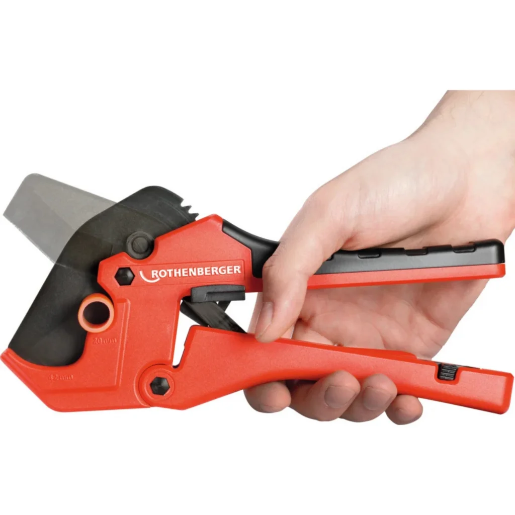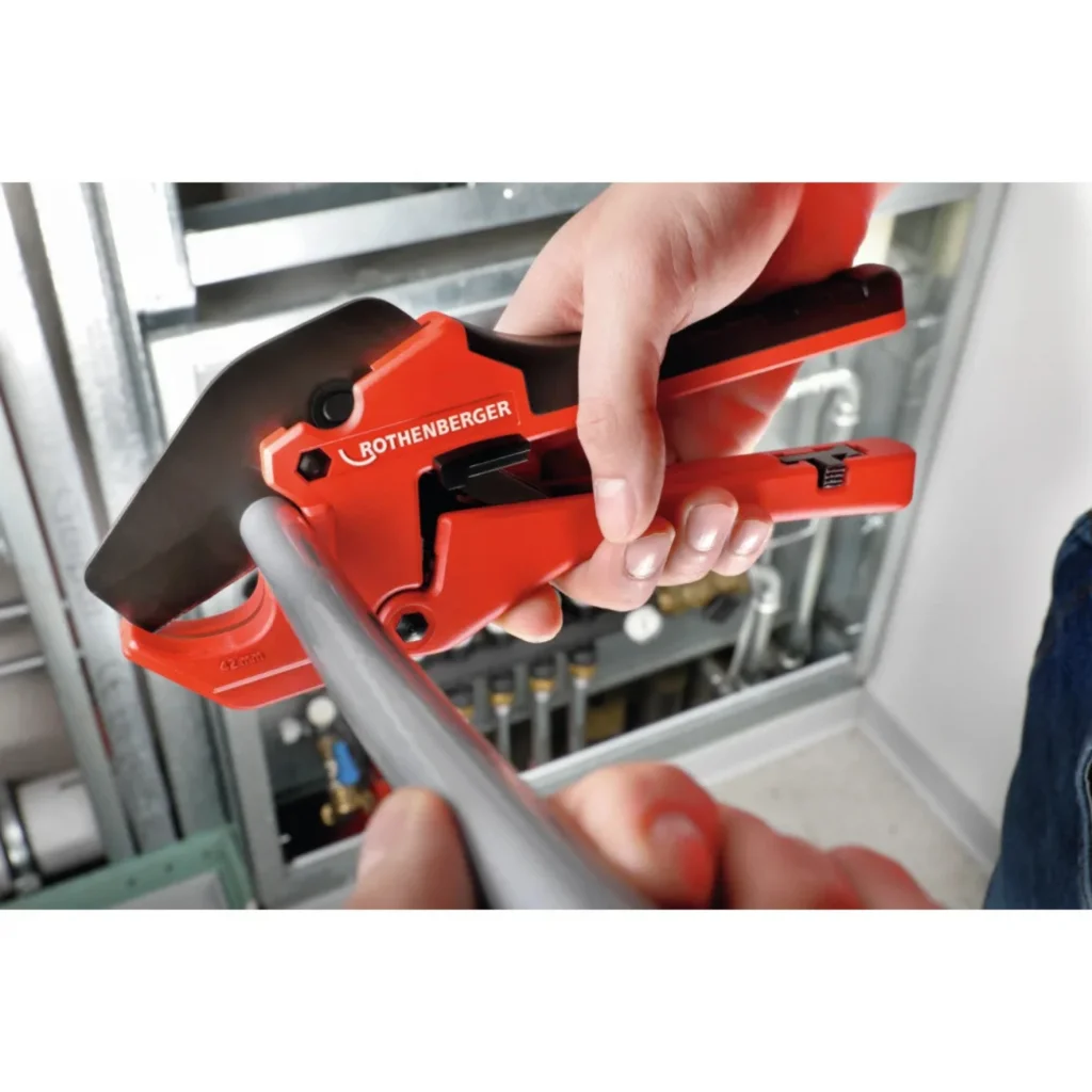 Rothenberger Rocut 42 Twin Cut, plastik, PVC ve çok katmanlı boruların kesiminde yüksek hassasiyet ve hızlı sonuç sunmak için tasarlanmış profesyonel bir boru kesme aletidir. Dayanıklı yapısı ve Twin Cut teknolojisi sayesinde boruları temiz, düzgün ve kontrollü bir şekilde keser.