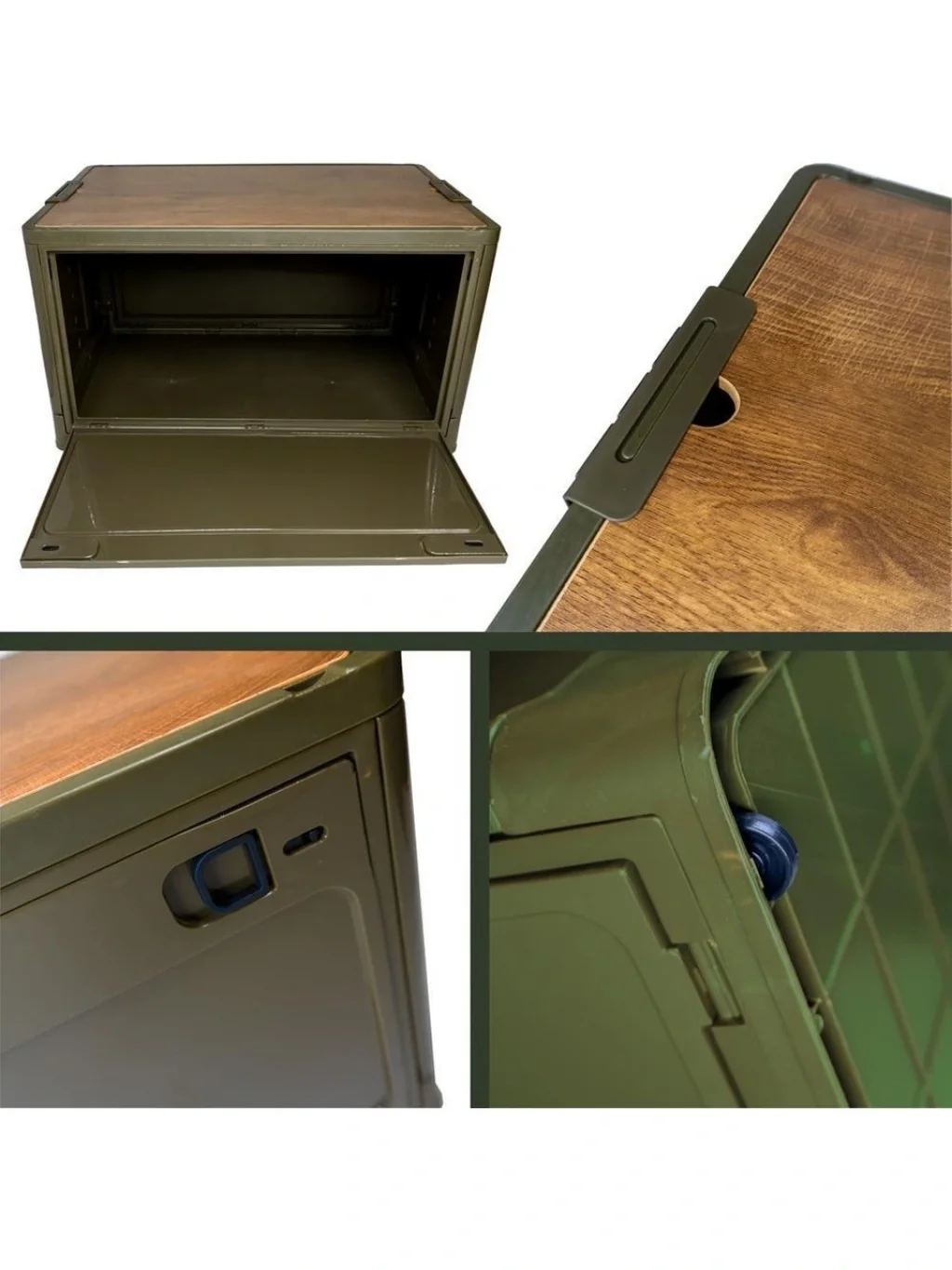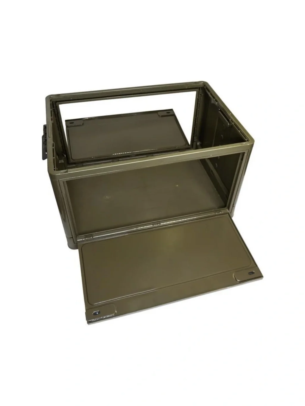 Kutunun ergonomik taşıma kulpları, dolu olduğunda bile dengeli ve rahat taşınmasını sağlar. Güçlü menteşe yapısı ve sağlam tabanı sayesinde ağır yükleri güvenle taşımaya uygundur. Üst kapağı eşyaların toz, nem ve darbelerden korunmasını sağlarken güvenli şekilde kapanır. Açıldığında sabit bir kutu formuna dönüşür, kapandığında ise düz bir yüzey haline gelerek araç bagajında, depoda veya çadır içinde yer kaplamadan muhafaza edilebilir.