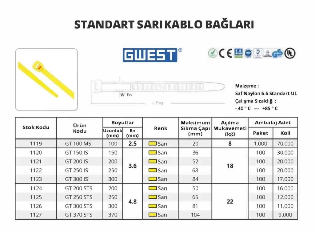Sarı kablo bağları, UV dayanımı sayesinde dış mekanlarda kullanım için de uygundur. Güneş ışınlarına karşı dirençlidir ve zamanla deforme olma riski minimaldir. Sert plastik yapısı sayesinde kabloları sıkıca tutarak kablo kopmalarını veya sıkışmalarını engeller. Ayrıca, esnek yapısı ile farklı kalınlıkta kabloları güvenli bir şekilde bağlayabilirsiniz.
