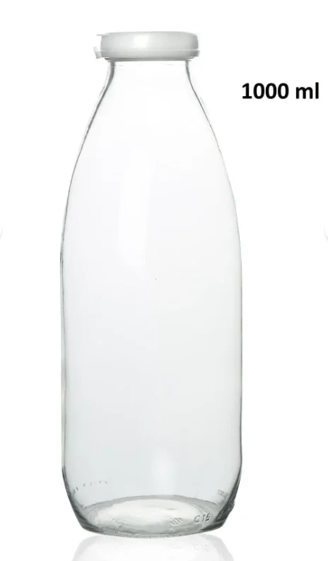Sızdırmaz Kapaklı Şeffaf Cam Süt Ayran Limonata Meşrubat Şişesi 1000 Ml