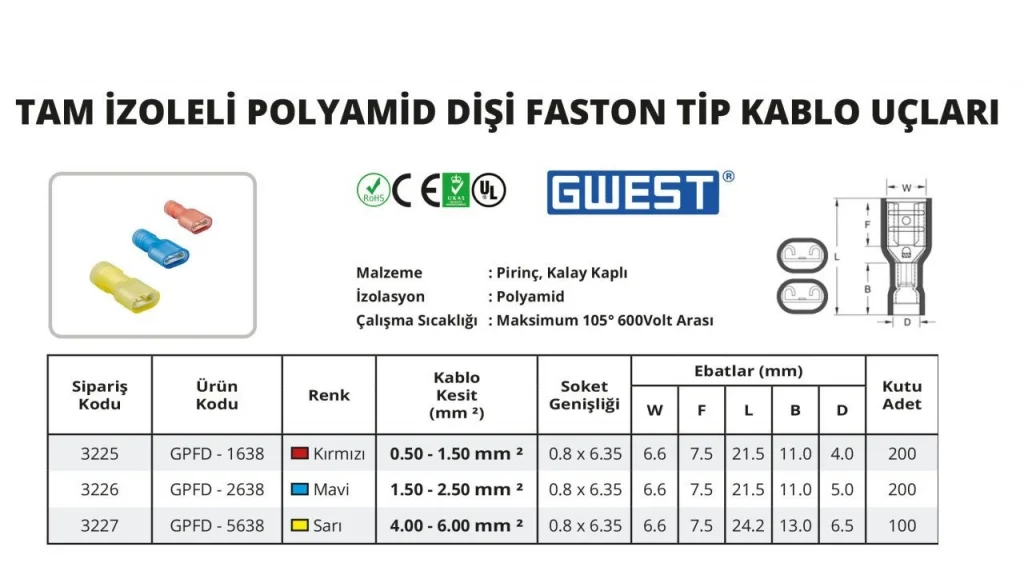 ✅ Kolay Montaj: Dişi faston tasarım, hızlı ve güvenli bağlantı imkanı sunar.