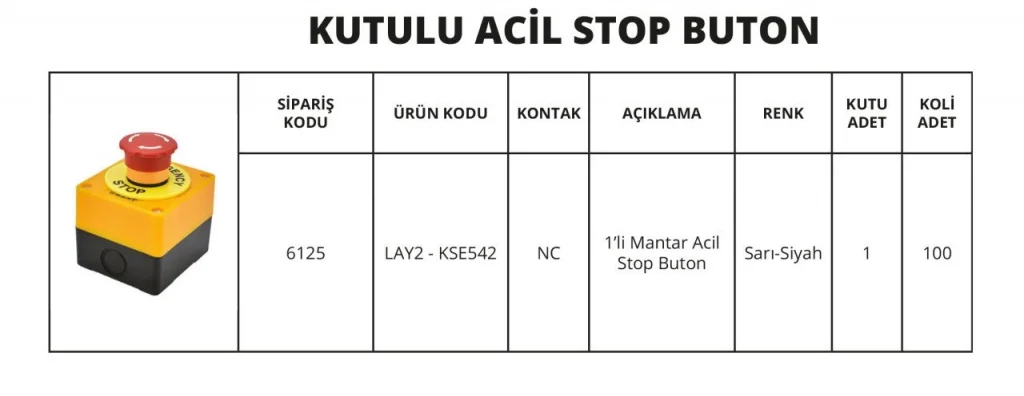 Tekli Sarı-Siyah Mantar Acil Stop Buton Kutusu, acil durumlarda hızlı müdahale için tasarlanmış dayanıklı ve işlevsel bir üründür. Hem güvenilirliği hem de kullanım kolaylığı ile ön plana çıkan bu buton kutusu, her türlü acil durumda hızlı ve etkili bir şekilde müdahale imkanı sunar. Kaliteli malzemelerden üretilmiş olan ürün, uzun ömürlü kullanım sağlar.