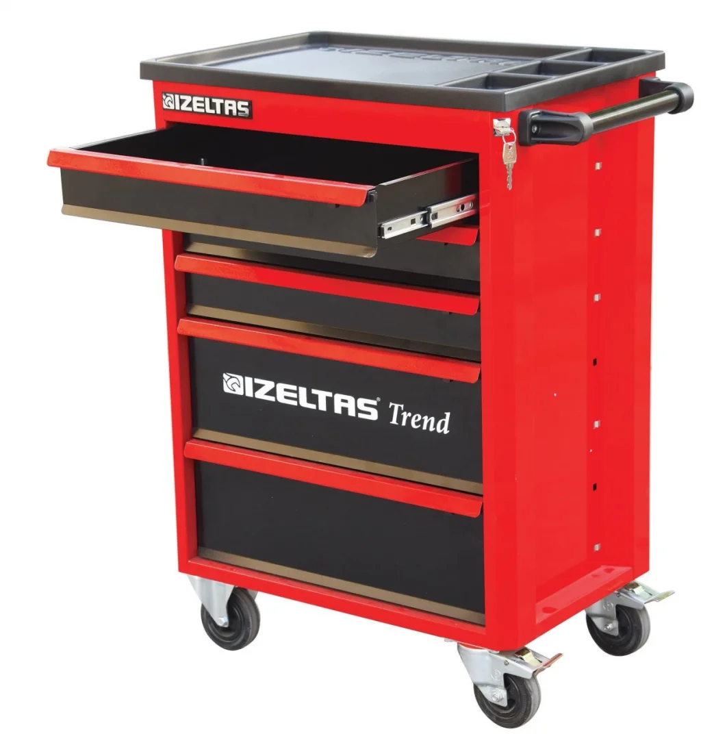 TREND 5 Çekmeceli Takım Dolabı, oto servisleri, marangoz atölyeleri, endüstriyel işletmeler ve bireysel kullanıcılar için mükemmel bir depolama çözümüdür. İzeltaş takım çantası yerine daha fazla saklama alanı sunarak iş yerinizde düzeni artırır. Çekmeceleri, derin lokma takımı, dübel, silikon kanülü, sprey boya, yapıştırıcı, boru kesme makası gibi birçok aksesuarı rahatlıkla muhafaza etmenizi sağlar.