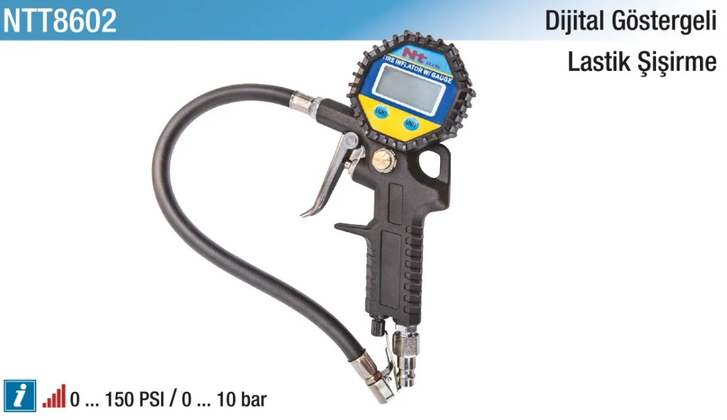 Kullanımı son derece pratik olup, lastik bakımını hızlı ve doğru yapmanızı sağlar. Doğru basınçla lastik ömrünü uzatır ve yakıt verimliliğini artırır.