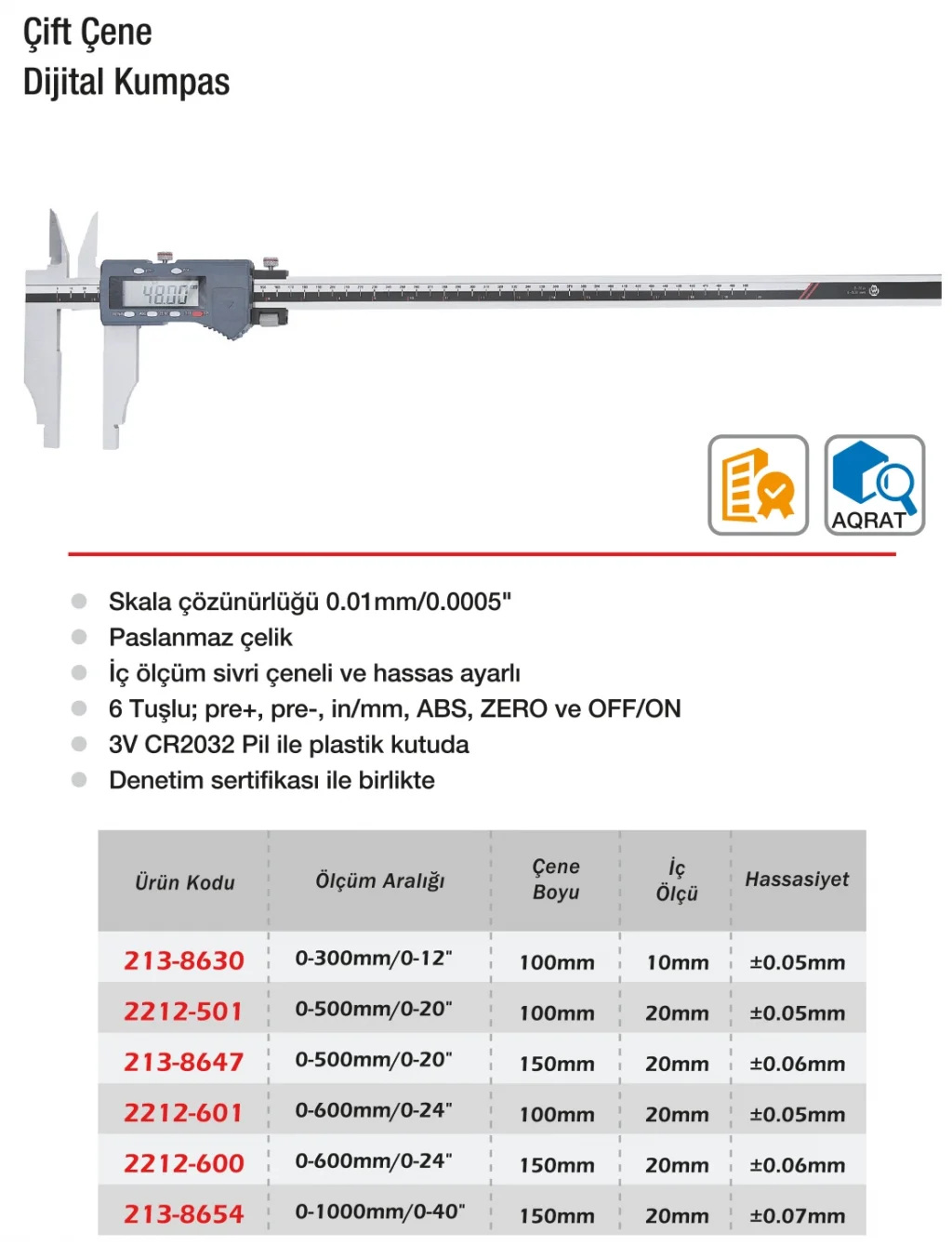 Werka Çift Çene Dijital Kumpas, hassas iç ve dış çap ölçümleri için özel olarak tasarlanmıştır. Dijital ekran, ölçüm sonuçlarının kolay ve hızlı okunmasını sağlar. Ergonomik yapısı kullanıcıya konfor sunarken, sağlam malzeme kalitesi uzun ömürlü performans sağlar. Teknik ve endüstriyel uygulamalarda güvenle kullanılabilir. Hassasiyet ve pratiklik arayanlar için ideal ölçüm aracıdır.
