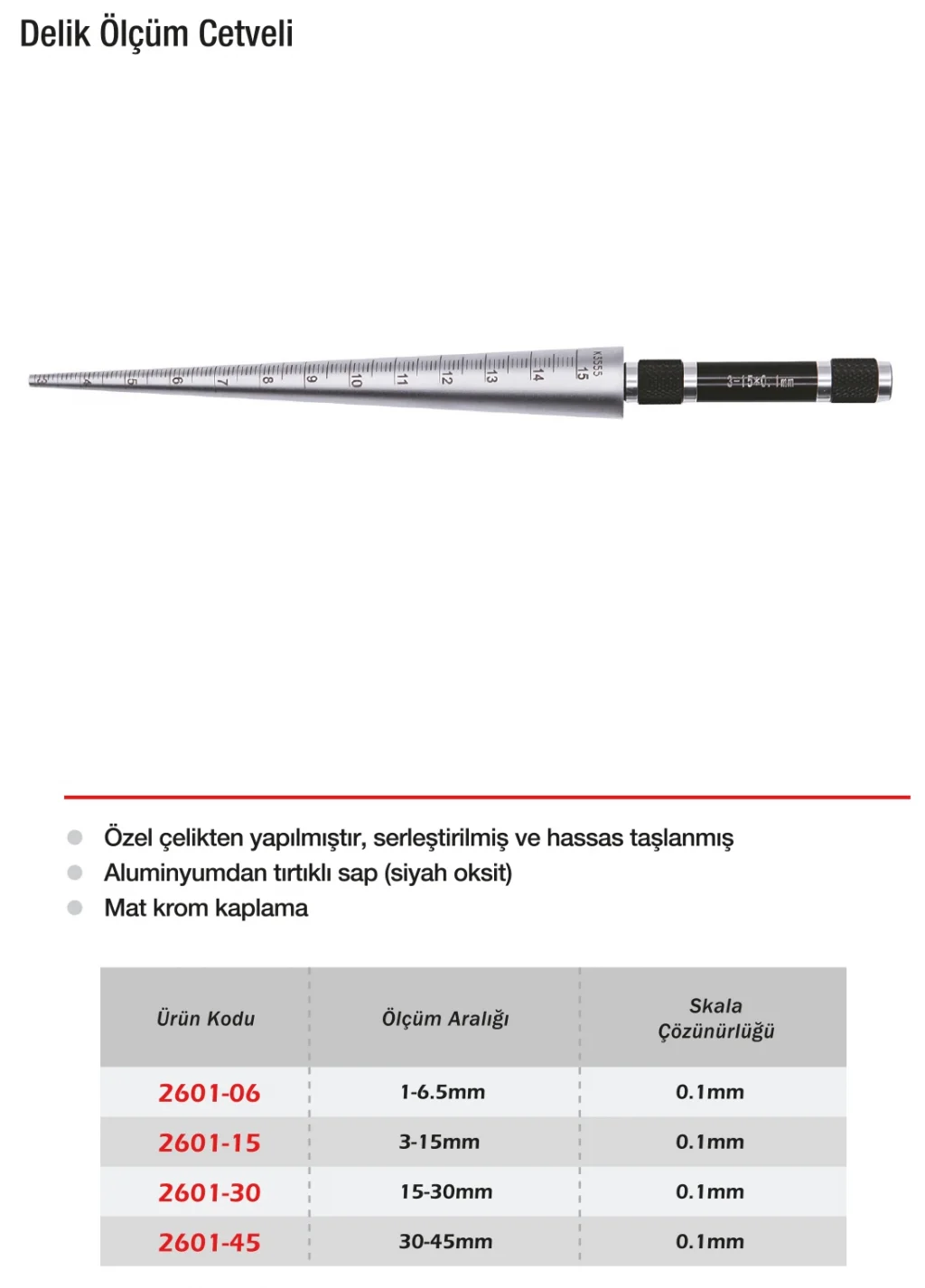 Werka Delik Ölçüm Cetveli, farklı çaplarda açılmış deliklerin ölçümünü hızlı ve güvenilir bir şekilde yapmanızı sağlar. Cetvel üzerindeki çok sayıda dairesel kesit, farklı çapları temsil eder ve her biri net bir şekilde etiketlenmiştir. Üretim sürecinde matkap çap kontrolü, delik pozisyonu ve hizalama işlemleri için pratik bir çözümdür. Dayanıklı yapısı ve hafifliği ile hem taşınabilir hem de uzun ömürlüdür. Özellikle CNC operatörleri, teknik ressamlar ve mekanik montaj ekipleri tarafından sıklıkla tercih edilir. Hızlı ölçüm gerektiren tüm uygulamalarda büyük kolaylık sağlar.
