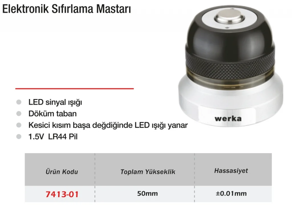 Werka Elektronik Sıfırlama Mastarı 50 mm, dijital mikrometre, kumpas ve kompratör saatlerinin sıfır ayarlarında maksimum doğruluk sağlar. Yüksek hassasiyetli üretimi sayesinde standart sapmaları ortadan kaldırarak ölçüm cihazlarınızın her zaman güvenilir sonuçlar vermesini sağlar. Sertleştirilmiş çelikten üretilen gövdesi, deformasyon ve aşınmaya karşı dirençlidir. Laboratuvar, üretim ve kalite kontrol ortamlarında sıklıkla tercih edilen bu mastar, ölçüm hassasiyetini korumak isteyen profesyoneller için vazgeçilmez bir ekipmandır.