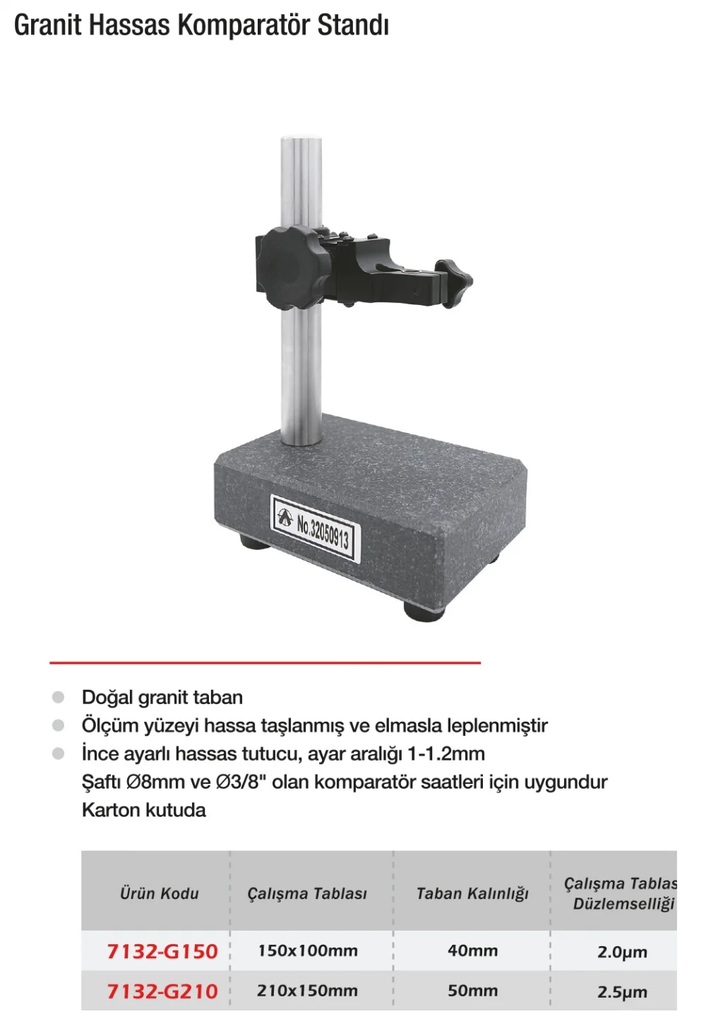 Werka Granit Hassas Kompratör Standı, sert granit malzemesi sayesinde darbelere ve titreşimlere karşı maksimum dayanıklılık sunar. Kompratör saatleri için ideal sabitleme platformu olan bu ürün, mikron hassasiyetli ölçüm işlemlerinde kararlı bir zemin sağlar. Granit yüzeyin doğal düzlemselliği, ölçüm doğruluğunu artırır. Laboratuvarlarda, kalite kontrol noktalarında ve kalibrasyon merkezlerinde güvenle kullanılabilir.