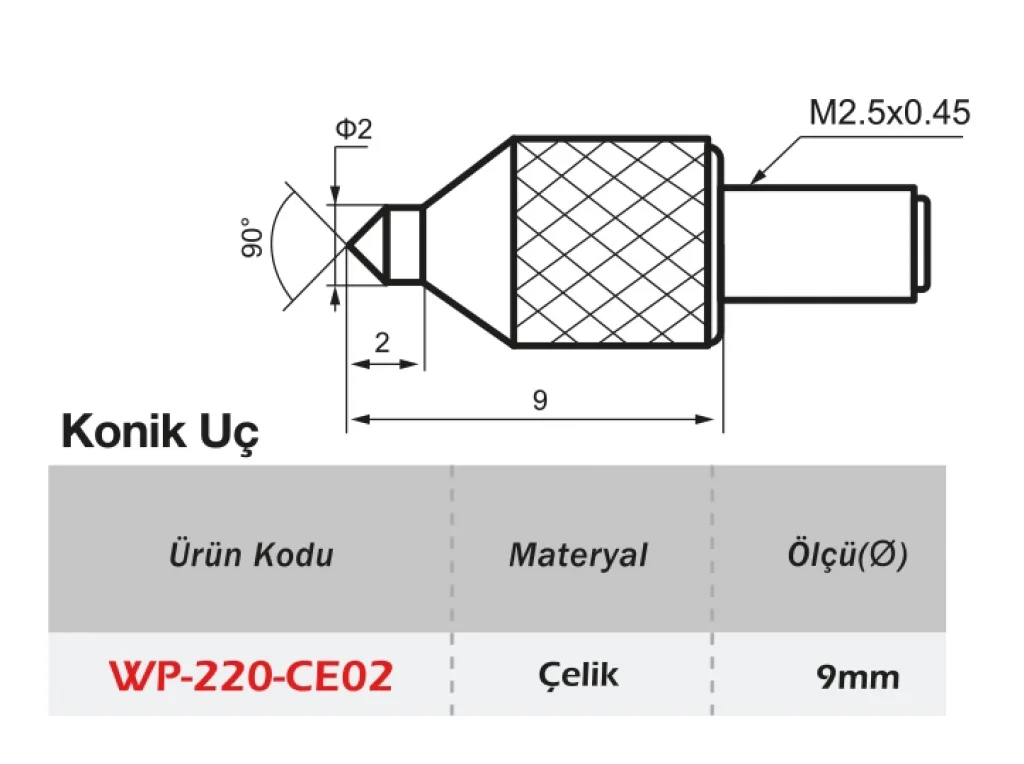 Çelik Konik Sivri Temas Ucu L9, ince işçilik gerektiren uygulamalar için ideal bir çözümdür. Sivri ve konik yapısı sayesinde hassas temas sağlarken, L9 uzunluğu dar bölgelerde etkin kullanım sunar.