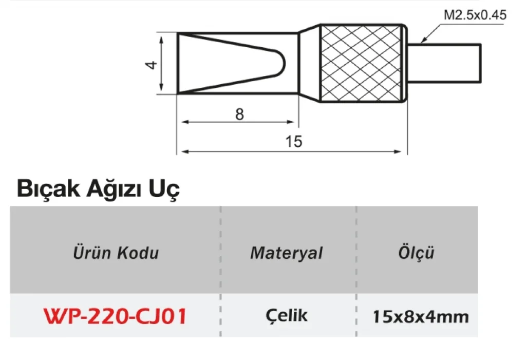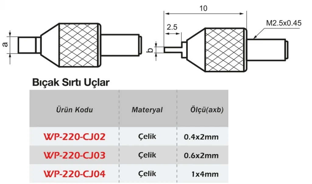 Werka Kompratör Bıçak Ağzı Temas Uçları, ince ve sınırlı yüzey alanlarında doğru ölçüm yapmayı kolaylaştıran özel uçlardır. Bıçak formundaki yapı, özellikle kenar ve oluk ölçümlerinde etkin temas sağlar. Yüksek dayanımlı çelik malzeme ile üretilmiş bu uçlar, ölçüm doğruluğunu artırır ve farklı yüzeylerde güvenilir sonuçlar elde edilmesini sağlar. Kompratör saatleriyle uyumlu yapısı sayesinde kolayca monte edilir.