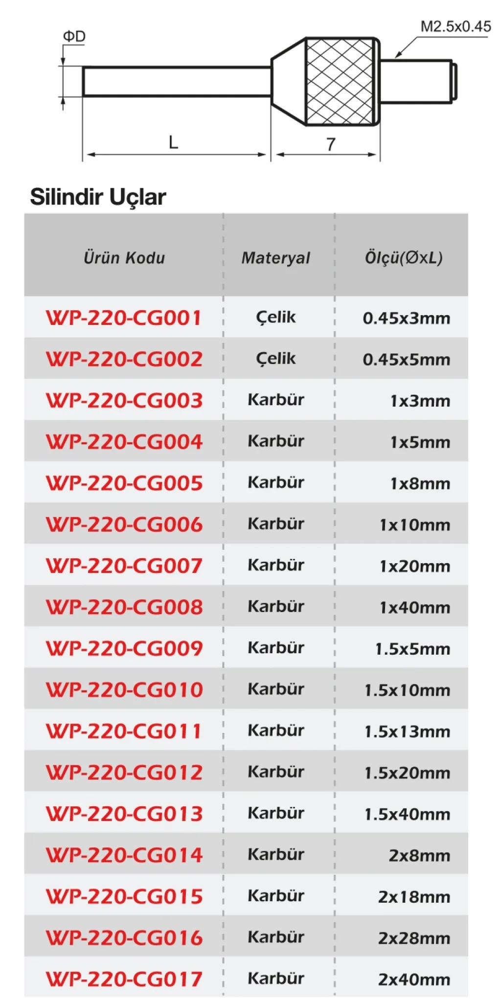Werka Kompratör Silindir Temas Uçları, silindirik ve eğimli yüzeylerin ölçümünde maksimum temas sağlayarak hata payını minimize eder. Ölçüm hassasiyetini doğrudan etkileyen bu özel uçlar, özellikle boru, iç yüzey ve kavisli alanların kontrolünde kullanılır. Sertleştirilmiş ve yüksek hassasiyetle işlenmiş yüzeyi sayesinde uzun ömürlü kullanım sağlar. Kompratör cihazlarına kolayca monte edilir ve farklı yüzeylerde yüksek performans gösterir.