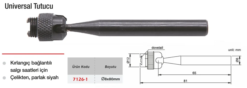 Werka salgı saati üniversal tutucu, çeşitli markalara ait salgı saatlerini güvenle tutmak için tasarlanmış çok yönlü ve sağlam bir aparattır. İş yerlerinde veya atölyelerde salgı saatlerinin sabitlenmesini sağlayarak kullanım kolaylığı sunar. Dayanıklı malzeme yapısı uzun ömürlü kullanım sağlar ve darbelere karşı dirençlidir. Üniversal yapısı sayesinde farklı salgı saati modellerine uyumlu olarak kullanılabilir. Kolay montaj ve pratik kullanım özellikleri ile iş süreçlerinizi hızlandırır. Ergonomik tasarımı sayesinde yer kaplamaz ve taşınması kolaydır. Werka kalitesiyle üretilen bu tutucu, iş yerinizde salgı saati kullanımı sırasında maksimum konfor ve güvenlik sağlar. Profesyonel kullanıcılar ve endüstriyel alanlar için ideal bir çözümdür.