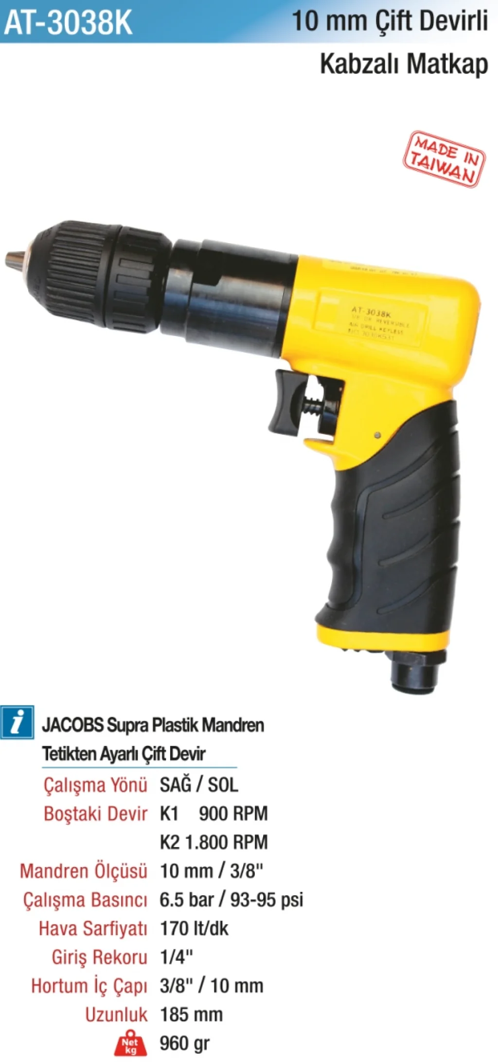 Hepsicinde 10 mm. 900 RPM/1800 RPM Çift Devirli Kabzalı Matkap, işlerinizi hızlı ve kolayca halledebileceğiniz kaliteli bir matkaptır. Dayanıklı yapısı ve yüksek devir hızları sayesinde her türlü matkap işinizde size yardımcı olacaktır. Hem profesyonel kullanım hem de evdeki ufak tamirat işleri için ideal bir seçenektir.