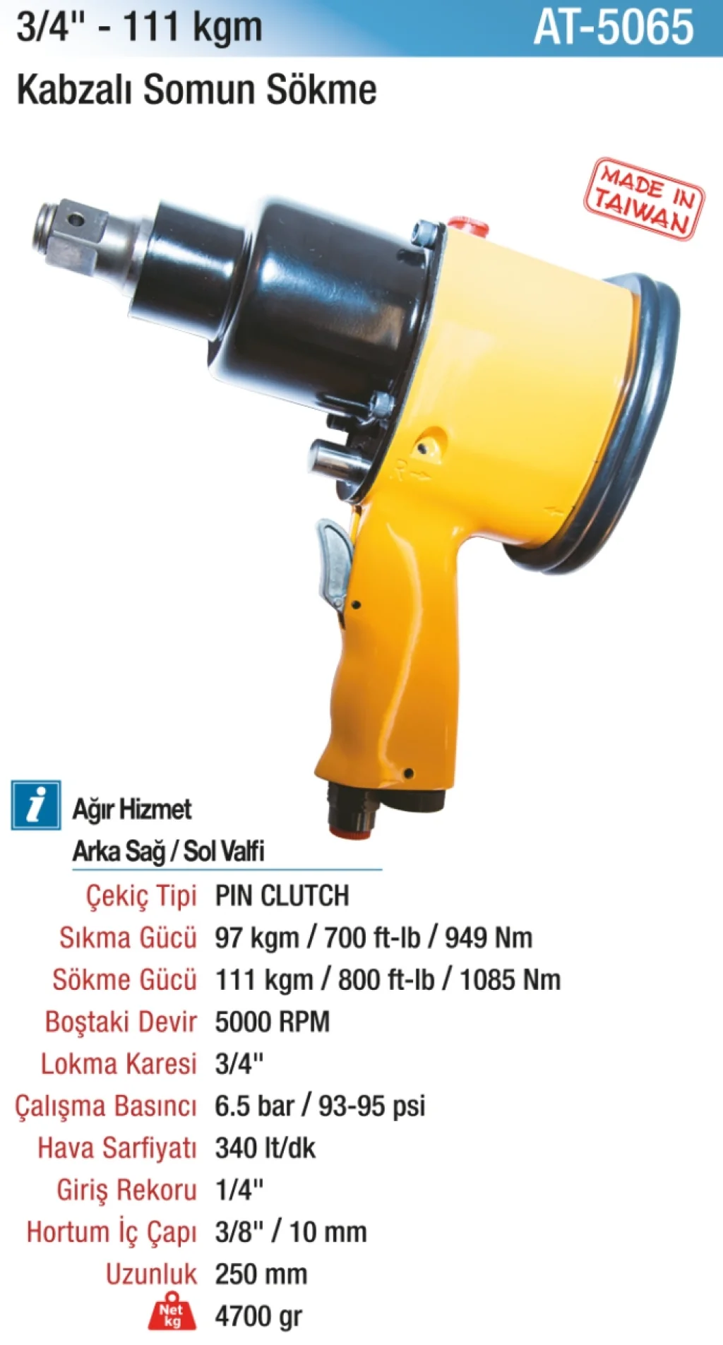 3/4" 98 kg 5000 RPM Kabzalı Havalı Somun Sökme, ağır sanayi ve profesyonel kullanımlar için mükemmel bir pnömatik çözümdür.