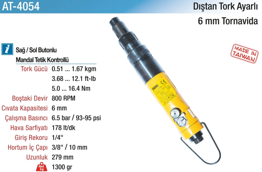 6 mm 800 RPM Düz Tip Dıştan Tork Ayarlı Tornavida, otomotiv, elektronik montaj, bakım ve onarım işlerinde mükemmel bir yardımcıdır. Dayanıklı yapısı ve düşük hızda yüksek hassasiyetle vidalama özelliği, bu tornavidayı profesyonel atölyelerde ve endüstriyel ortamlarda güvenle kullanmak için ideal hale getirir.