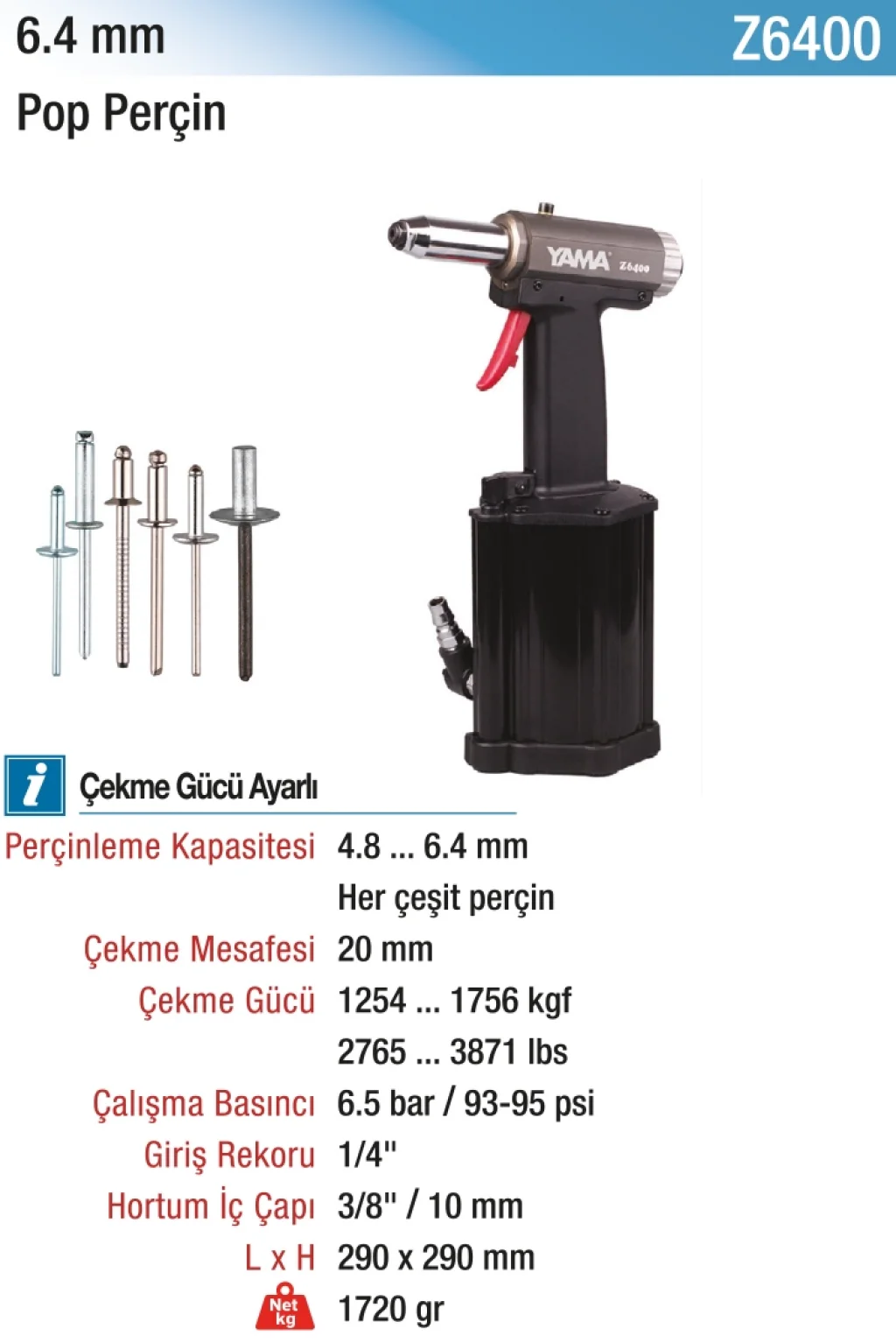 6.4 mm Vakumsuz Pop Perçin Pensi, büyük boy perçinleme işleri için yüksek mukavemetli gövdesi ve güçlü sıkıştırma gücüyle üretilmiştir. Kalın malzeme birleşimlerinde dahi güvenli bağlantı sağlar.